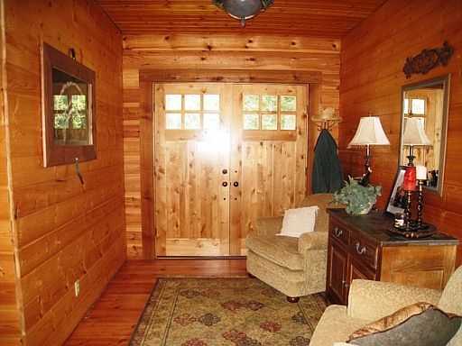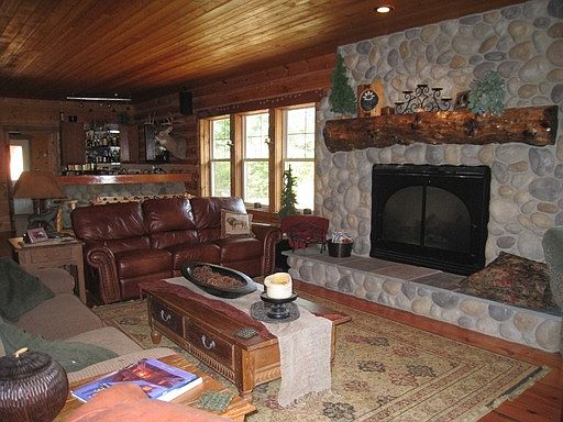 Furnished Cabin on 9 AcresThis rambler has a great room open concept with three bedrooms and two full baths. The kitchen has granite counter tops and eating bar. Huge river rock propane fireplace with massive hearth. A corner wet bar is surrounded by a billiards table and foosball table. There is a breezeway connecting the house to the detached garage. Covered patio, hot tub and fire pit to enjoy the outdoors all year long. Snow mobile out the back door.