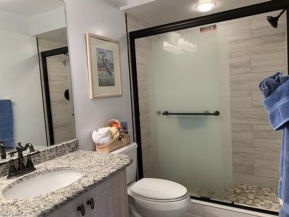 Nice First floor condo with lake view. Kitchen remodel by Corner Stone. Nice laminate floors. Built in cabinets in guest bedroom. Master shower and bathroom remodel last year. Nice move in ready. Sold turnkey. Activities director play tennis, pickleball, shuffle board and many other planed sports. Close to fort Myers Beach and Sanibel. Low condo fee of $320. Estimated taxes at $2,200 a year or $1,600 with homestead.