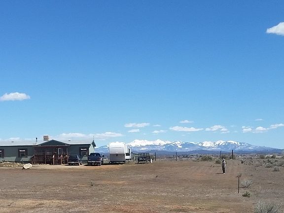 4 bedroom and 2 bath remodeled/customized manufactured home on permanent foundation with nearly 5 acres. Beautiful views of the La Plata mountains and Mesa Verde to the east and Sleeping Ute to the west. Front and rear covered decks to enjoy these views along with the beautiful sunrises and sunsets. 4 storage sheds on property including one that is large enough to be a work shop. Fenced in back yard with sprinkler system. Rear half of land is fenced as well. Inside home has been upgraded with tape/textured walls, vaulted ceilings, tile and wood flooring throughout. There is a forced air furnace or woodstove that can heat the entire home. Master suite has bamboo flooring, a customized master bath including a tiled walk-in shower and hammered copper sinks with waterfall faucets. Plenty of hickory cabinets in the large kitchen along with a pantry and great breakfast bar. Main house bath has an antique claw foot bath tub, over 100 years old, but looks like new! Practical utility room with washer/dryer and another pantry. 3 bedrooms at other end of this house plan to give kids their space.