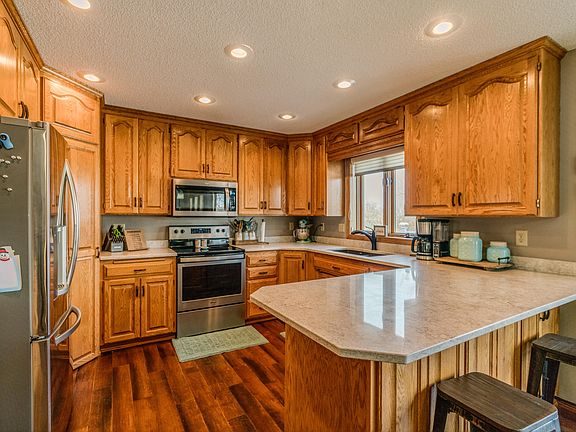 *SEE THE VIRTUAL TOUR!* Move right in and ENJOY this country home on approximately 5.22 acres with amazing views, shop, guest cabin, and more! Fish, kayak & canoe right out your back door on Apple Creek!! The amazing home offers over 4,000 sf of updated living space. The main floor has everything you need including the laundry - and oh so many updates! The KITCHEN has almost new stainless steel appliances, quartz countertops, hardware, and fixtures - plus there is a pantry & custom ISLAND that can double as a table! The bright living room has a gas fireplace with new custom rock surround. The MASTER SUITE offers space for all of your furniture - it's a private oasis! The master suite also offers double walk-in closets, linen storage, and MASTER BATH with whirlpool tub, double sinks, and walk-in tiled shower. There is also a main floor office & large 2nd main floor bedroom. The WALKOUT basement offers great entertainment space with a gas fireplace, gorgeous bar, and walkout to the rear patio. There is a 3rd bedroom, full bath, and 2 n/c bedrooms. There is also access to the HOT TUB room from one n/c bedroom (also could be a game room!) and hot tub is included! And we can't forget about the 2-zoned geo-thermal heating & cooling system, 2 50-gallon water heaters, and tons of storage space! There is a fully finished 32X50 (1,560 sf) SHOP that is heated, has drain, water, loft, and car lift! There is a guest cabin w/ electricity, shed w/ electricty, and PLAYSET! The sprinkler system covers most of the 5 acres and is fed from Apple Creek! Oh so many details! Come see and enjoy the peace and quiet of this property overlooking Apple Creek! Call your Realtor for a copy of the Property Features & Details Packet or to schedule a showing today!