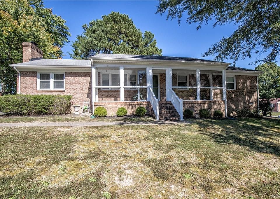Welcome home! This all Brick Ranch is a treasure! Light & Bright with tons of Natural Light. A traditional floor plan with a lovely living room, perfect dining room and fabulous family room hosting a wood burning fireplace. Primary bedroom is en suite with an oversized shower and dual closets. Kitchen is dine in and updated throughout. Located on a corner lot with rear fenced yard, paved driveway with rear parking pad. Detached shed for additional storage. Convenient location with award winning Chesterfield County Schools.