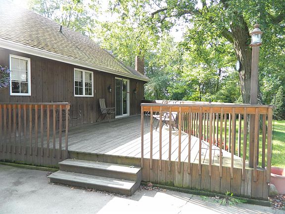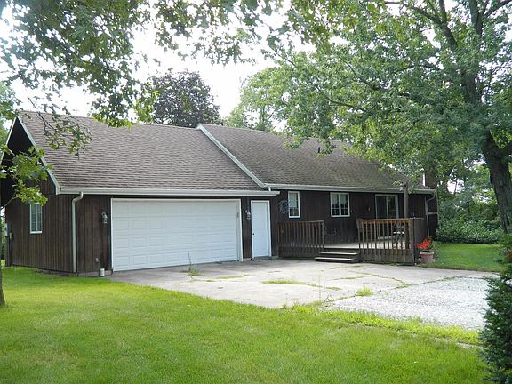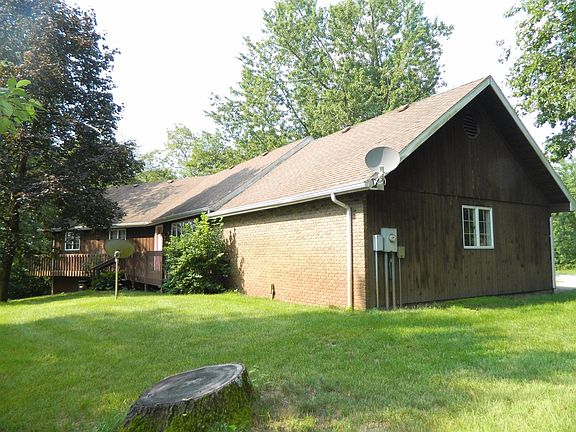 If you are looking for privacy, this is it! Nice Hilltop Ranch with BASEMENT and set back on 8 WOODED ACRES! Home has awesome views and you'll love the 2-sided wrap around balcony deck. Nice size Bedrooms, fully equipped Kitchen, Dining Room, Living Room and finished Laundry Room. Partially finished Basement with Bathroom and huge Rec Room. Awesome rustic look! Barn wood panels and sliding barn door, gas fireplace and built in credenza. Zoned heating and cooling, generator hook up, new surround tub and newer water heater. Property also has huge POLE BARN and 2nd Building (37 FT. x 91 FT.) perfect for multiple boat and/or RV storage. Everything on your wish list and more! Schedule a showing today!