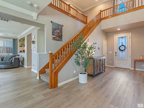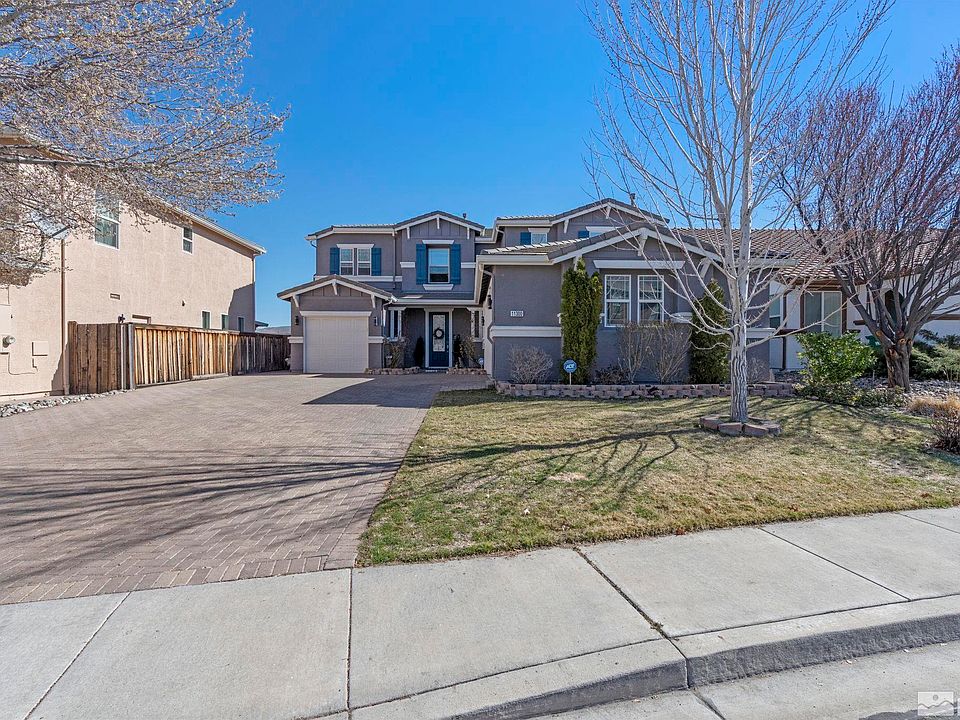 This move-in ready South Reno home shines like a gem! The vaulted ceilings, extensive elegant crown molding, and new LVP flooring create a welcoming atmosphere as soon as you step inside. The bonus room on the main level offers versatility, whether you need a home office, study, workout area, or additional space for entertaining. With ample living space, there's plenty of room to pursue your hobbies or host gatherings with friends and family., The low-maintenance aspect of the home means less time spent on upkeep and more time enjoying the comfortable lifestyle it offers. With four bedrooms and two and a half baths, it's spacious and accommodating. The inclusion of an EV charging station is not only practical but also forward-thinking in terms of sustainability. An external 30 AMP RV outlet is already installed for your convenience. A fully landscaped low maintenance backyard is a dream for those who enjoy outdoor living without the hassle of extensive upkeep. Enjoy easy access to the much loved neighborhood paved walking path right behind this home that runs for miles and is surrounded by beautiful mountain views. The two storage sheds add extra convenience for keeping tools and equipment organized. Entertaining friends and family is made easy with the stubbed-in BBQ, the beautiful granite countertops, large kitchen island, tons of kitchen storage with walk-in panty, and stainless-steel appliances that provide both style and functionality. Electrical is already provided on the patio, if you choose to install your dream hot tub. The upgraded features such as new carpet and LVP flooring, interior paint, and plantation shutters add a touch of luxury and modernity. This sought after location is ideal for proximity to schools, shopping centers, and recreational trails for outdoor activities like walking and biking, and makes for a short trip to Mt. Rose for skiing and hiking. Overall, this home is a perfect blend of comfort, convenience, and style. With all these features and this home being "move-in ready" it is sure to garner a lot of interest. Welcome to a home where you can settle in and enjoy the beauty of South Reno living.