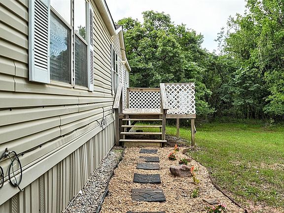 Welcome to your private country retreat! Back on market with updated kitchen Florian Oak laminate flooring, updated sub flooring, and HVAC tuneup. This beautifully maintained 3-bedroom, 2-bath home sits on over two acres of serene, tree-lined property, offering the perfect blend of comfort, function, and outdoor living. Enjoy the peace of mind that comes with a storm shelter, and spend relaxing evenings on the back patio beneath the pergola, surrounded by mature trees that provide shade and privacy. The home features new flooring in the living room and bedrooms, a new dishwasher, and a new well pump installed in 2023. A spacious 2-car carport offers covered parking, while the 10x20 double-lofted barn with A/C provides excellent storage or workshop space. Outdoor enthusiasts will love the 1/4-mile walking/ ATV trail that loops the property and through the woods—perfect for adventure or peaceful nature walks. This is a rare opportunity to own a move-in-ready home with room to roam, explore, and unwind.