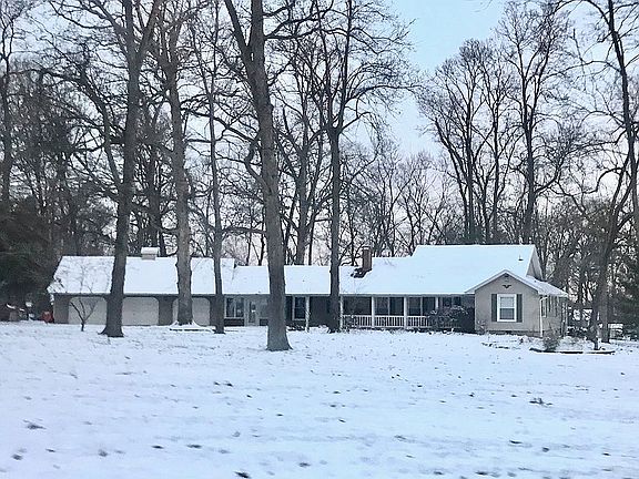 Nestled in this 3 acre semi-wooded property is this updated and outstanding one level home, with approx 2,420SF. The living room has a welcoming gas log fireplace, 3 large windows and built-in book shelves. The kitchen offers, a double sink, kitchen appliances, many custom cabinets including a fold-out pantry and a breakfast bar overlooking the family room that is lined with windows and has a fantastic view of the back yard. The master bedroom is just gorgeous with a step down design and a walk- in closet. The large 2nd bedroom also has a walk-in closet. The main bathroom has been recently remodeled and includes a tub/shower combo. This house also offers a half bathroom, laundry room with large closet, and a flex room that could easily be an in-home office. Complimenting this house is a huge enclosed breezeway/sunroom with skylights, welcoming covered front porch, 2 back decks perfect for entertaining, and a 3 car HEATED garage. In addition to all this, there is a fenced in (+/- 1 Acre) back yard, plus buried electric fencing, large covered/concreted kennel area, sidewalks, and 1 outbuilding. This property is situated on the corner of Sawyer Rd and the Frontage Rd. It is walking distance to the golf course!
