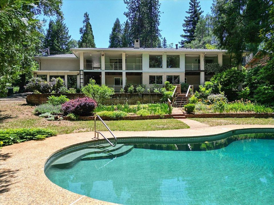 NEW ROOF! Bring your creative touch to this exceptional mid-century Nevada City home situated in the highly desirable Bella Vista Park neighborhood, enjoy a quality lifestyle and reap the rewards. Conveniently located near Nevada Union High School, Sierra College Campus, hiking trails and shopping, dining and community events in historical downtown Nevada City and Grass Valley. The street level features a spacious light-filled living room, separate dining room, a family room with fireplace and built-in bookshelves flows seamlessly to the roomy galley style kitchen and dining room, an extra-large primary suite that opens to a covered deck and offers lots of closet space and a cozy fireplace, a secondary bedroom and a laundry room with storage cabinets. The lower level, with separate entry, offers a spectacular multi-functional bonus room with backyard access, 2 large bedrooms one with a fireplace, a bathroom with a sauna, space for a kitchenette and plenty of storage. The multi-level design offers options for a spacious separate unit with income potential, multi-generational living space, or the ideal workshop. The park-like backyard is surrounded by lush landscaping and features a sparkling pool, raised garden planters, 2 large covered decks and a hot tub