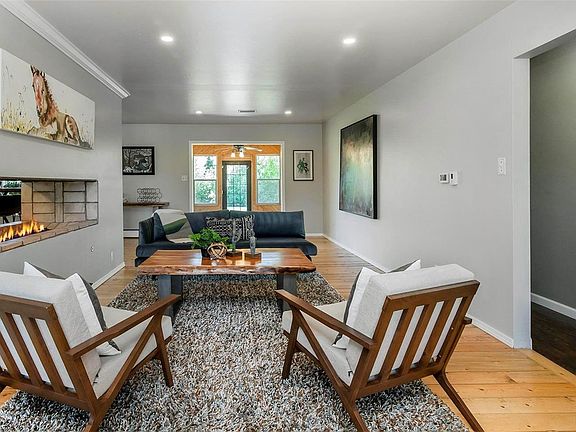 Enjoy the eclectic farmhouse vibe in the cozy bright ranch style home with an open flowing main level, large kitchen perfect for gatherings and enclosed sun porch. Thoughtful, environmentally friendly updates like reclaimed beetle kill pine floors, aggregate countertops, high efficiency boiler for radiant heat and on demand hot water, new attic insulation, and an entirely new sprinkler system with Rachio smart controller for wise water use. The home is on municipal water supply with a well for outdoor watering which keeps water bills low. The primary bedroom suite offers a calm retreat with comfortable soaking tub and extra spacious walk-in closet. There have been many more updates done throughout the home and property for you to discover. Agent owned. Don’t miss out on the opportunity to make this magical property yours!