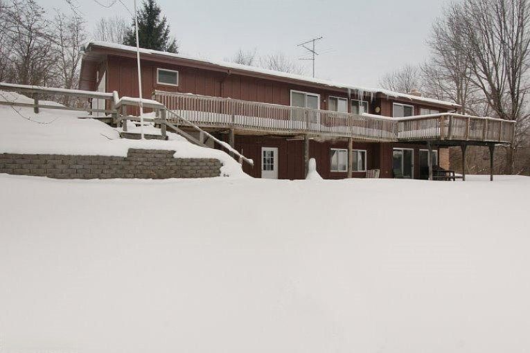 SELLER TO ENTERTAIN OFFERS BETWEEN $274,876 AND $289,876. A lot of home with 1.2 acres, private 125 feet of sandy frontage on Crooked Lake and 24 x 40 pole barn(with Concrete). Private and all sports lake. Ranch style with attached 2 stall and additional 1 stall underneath for storage. Wired for generator. Main level has cathedral ceilings, sliders facing the lake and deck length of home. Master bedroom, bath, 2nd bedroom(currently used as main floor laundry) open kitchen, dining area and living room. Walkout basement with lots of storage, full bath, family/rec room with wet bar/kitchen area and chimney for wood/pellet stove. Homes needs some updating but lots of value in location and lake frontage.