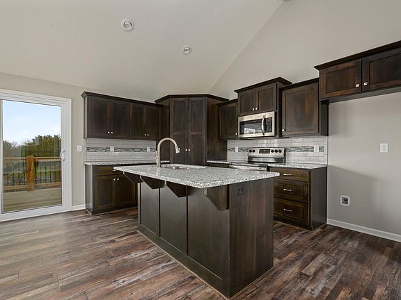Beautiful Open Floor Plan with Vaulted Ceilings and Exposed Beams from the kitchen to the great room, kitchen island with sink, larger corner pantry, soft-close drawers, granite counters and more! Large, covered deck off the kitchen overlooking the lawn and greenspace behind the property. Large Master with box vault ceiling. Walkout basement with wet bar in the family room, 4th bedroom and 3rd full bath! Extra room for toys or vehicles in the 3-car garage. All kitchen appliances included. Photos are of the same plan though may not be the exact property. Finishings and colors may vary. Ready for move-in. 2-Year lease required. Animals may be allowed at manager's discretion. There will be added fees or rent for animals. All properties are smoke free. Rent must be paid with ACH automatic withdrawal which requires a checking or savings account.