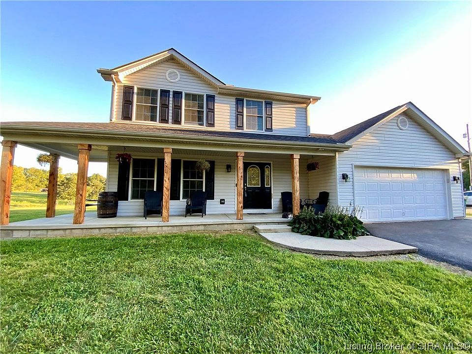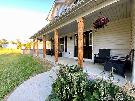 Are you ready for country living at its finest? This charming updated 4 bedroom, 2.5 bath home mirrors the tasteful scheme of the popular “modern farmhouse” and is ready for plentiful memories to be made. Conveniently located on a scenic, dead-end road but with quick accessibility to Interstate 65 (10 miles from Henryville exit). A buyers own oasis at their fingertips with a wrap-around porch, a covered back patio, one year old above ground (estimated 33x54) swimming pool, Hardy outdoor wood-burner that comfortably heats the home and household water. Property also offers a furnace with heat pump as a secondary heat source. Some unique characteristics to exemplify about the home is the bedroom tray ceilings, modern laminate flooring, a large inviting space due to the open concept of the main level, and clean, spacious rooms for each space offered. Call to schedule your own personal showing and witness this properties offerings for yourself! Appliances included washer/dryer, refrigerator, oven/range, microwave, and dishwasher. Roof was shingled in 2022. AC professionally serviced annually, including to date for 2023. Property offered (1.3 ac +/- fenced off) is being split off from a larger tract a new legal description to follow. Washington Co assessors office estimates updated annual taxes of $1,957.60 after the split.