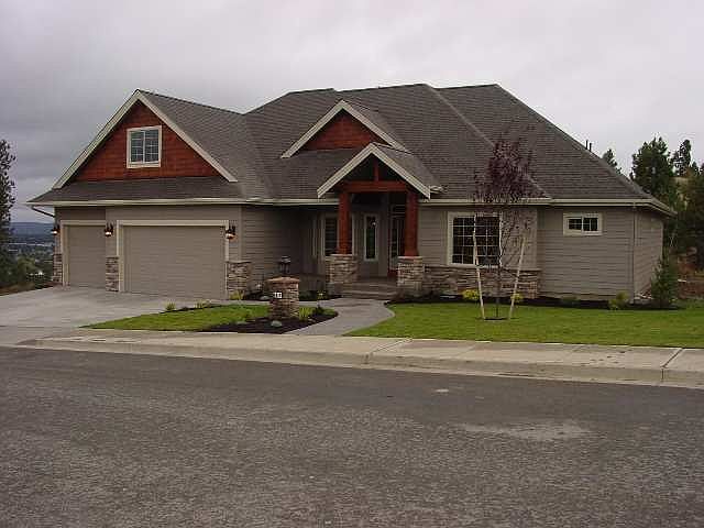 ASPEN MEADOW CRAFTSMAN PLAN BY PARAS CONSTRUCTION IN ASPEN CREEK, SPOKANE VALLEY'S NEWEST UPSCALE NEIGHBORHOOD. OPEN FLOOR PLAN WITH HARDWOOD ENTRY, KITCHEN, NOOK, HALLWAY & POWDER ROOM. SLAB GRANITE COUNTERS W/ FULL BACKSPLASH, VAULTED CEILING IN GREAT ROOM. MAIN FLOOR MASTER W/ SPA TUB AND WALK IN SHOWER PLUS SEPARATE DEN. BASEMENT W/9' CEILINGS W/2 BDRM'S, FAM RM AND BATH COMPLETED. LANDSCAPED FRONT YARD. APPROX 12X20 TREX DECK, LARGE SPECTACULAR KITCHEN AND VIEW OF MT SPOKANE.
