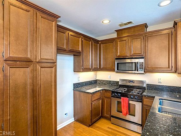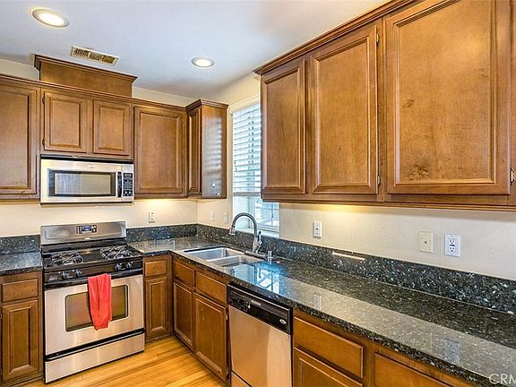 Check out this corner unit condo nestled in the middle of Orange County. This 2 bedroom, 2.5 bathroom is all ready for move-in. Pull into your 2 car attached garage and enter the home with 1442 square feet. Heading up to the second story, you'll find yourself in the main living area of the condo. This level is designed for comfort and functionality, with several key features: The dining area is adjacent to the kitchen -- perfect for enjoying meals with family and friends; the kitchen is fully equipped with essential appliances including a stove/oven, dishwasher, and microwave and has a lot of cabinet space making this kitchen ready for cooking and meal preparation; the living room is a cozy and inviting space, ideal for relaxation, entertainment, and spending time with loved ones; this level also offers access to a balcony, providing an opportunity for outdoor enjoyment and fresh air; the half bathroom is conveniently located on this level for guests, ensuring privacy and ease of access without having to go upstairs; your laundry room on this level has hookups for a full size washer/dryer. Moving up to the third floor, having both bedrooms and additional bathrooms ensures comfort and convenience for residents or guests. The master suite, with its separate bathtub and shower, along with dual sinks, offers a luxurious retreat within the home. The fact that the complex is relatively new and includes a pool/spa, grill and guest parking enhances the appeal and value of the property. Note this home has real bamboo wood flooring throughout, granite kitchen countertops and travertine countertops in the master bedroom suite. Overall, this is a desirable and move-in ready home in a prime location.
