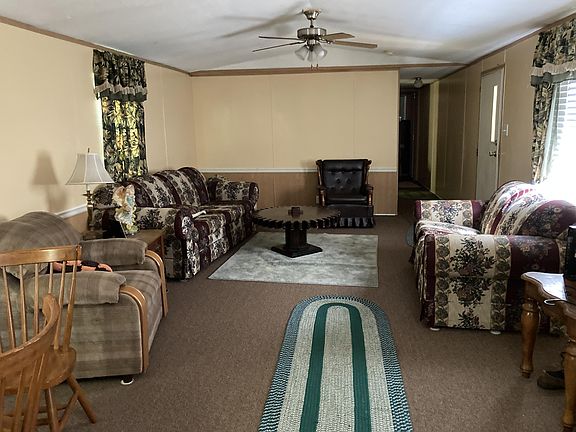 Looking for seclusion? Here is a 3 bedroom, 2 bath single wide trailer situated on 5.5 acres of land. A small creek runs in front of the property. The single wide has an open concept. A new tin roof was put on around 2009 due to a winter storm that caused damage to the roof (which caused a leak inside a bedroom closet - as seen in pictures). The front porch was built this year. The motor in the heat pump was replaced within the last month. It has an unattached carport. The washer/dryer, stove, refrigerator, and furniture (except what is in the far bedroom on the living room side) is included. Don't miss out on this deal! Sold As-Is/Where-Is. If the buyer wants a home inspection performed, it will be at their cost and for their informational purposes only. The seller will not be responsible for any repairs. Information taken from the seller and public records. It should be verified by buyer and buyers agent.