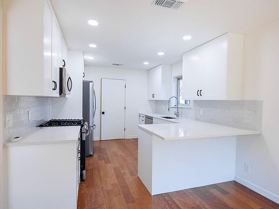 Modern comfortsEnclosed back patioOriginal resurfaced hardwood floorsOpen airy atmosphereSleek modern kitchenTall vaulted ceilingsPeaceful well-established neighborhood