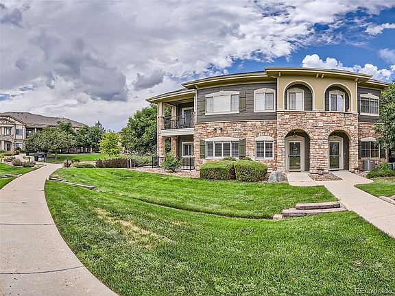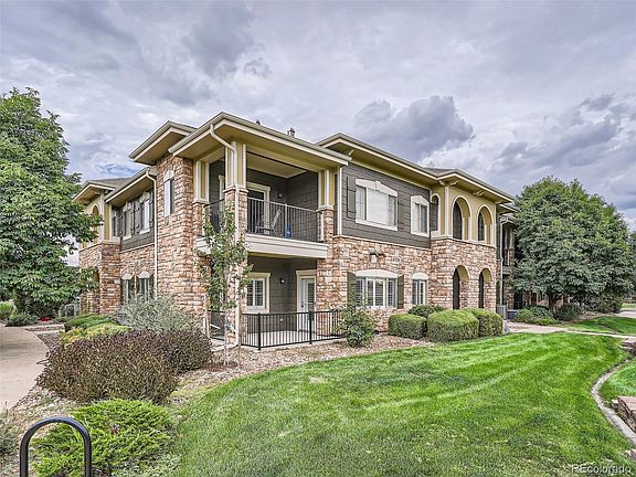 Ground floor unit; no stairs period! Open, spacious, light, bright; plantation shutters throughout; tile flooring and carpet in bedrooms; custom tile backsplash; ceiling fans; newer paint; suite with coffered ceiling and adjoining beautiful 5-piece bath; 2-car tandem; central air; covered veranda with view of the beautiful lush common area beyond. Close to Denver, Boulder, trails, shopping, restaurants, recreation, golf, park. Sought-after main floor unit. Home warranty offered.