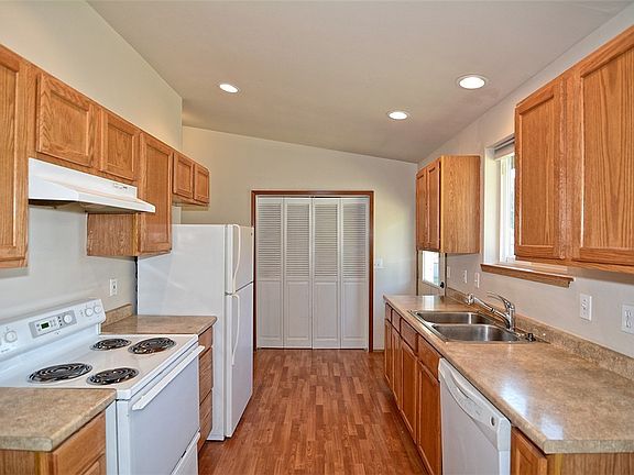 Very well maintained home with large open rooms - light and bright with vaulted ceilings and lots of windows. Beautiful custom river rock fireplace with wood stove, new carpeting and paint throughout, big deck and a large level fenced yard. Mechanics delight with a huge 2-car garage plus 180 sq ft work area in the house, big storage room, and a 480 sq foot carport. Chicken coop and large storage shed built in 2021. Fruit trees and grapes. Large back patio and lower level slider and windows to unfinished downstairs.Loads of level parking, on a quiet street w/ riverfront park one block away. All in great condition, take a look now.