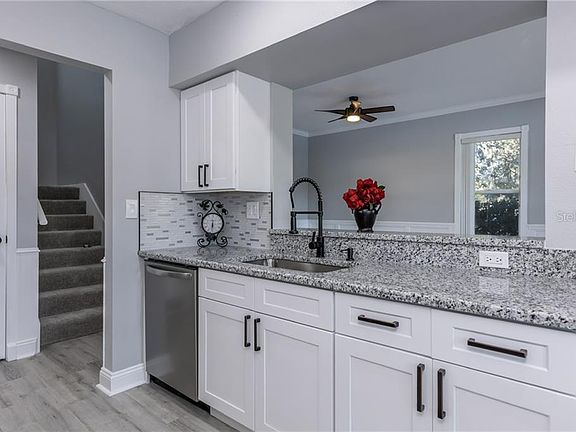 • Interior Features: Ceiling Fans(s), Eating Space In Kitchen, High Ceiling(s), Master Bedroom Downstairs, Stone Counters, Walk-In Closet(s), Crown Molding, Solid Wood Cabinets, Thermostat, Kitchen/Family Room Combo, Living Room/Dining Room Combo