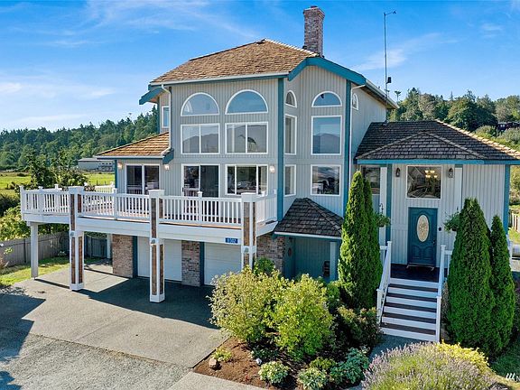 Live like you're on a beach vacation every day with this stunning 4-bedroom Samish Island water view home! Enjoy the sea breeze while entertaining on your wrap-around front porch or in the fully fenced backyard complete with built in BBQ's, firepit, greenhouse, & garden. Wake to the sound of the waves & the view of the water from the spacious top-floor primary suite featuring a large bathroom with jetted tub & two walk-in closets. Work from home with high-speed Internet & watch birds & boats in the bay. The main level of the home has an updated eat-in kitchen, dining room, and great room, all with views of the water. The lower level family room has its own access to the backyard, bedroom & bath. Seller giving $20,000 credit for new roof!