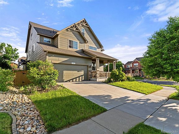 This rare 3-story, corner lot home in the highly sought out River Oaks neighborhood is perfect for a growing family or those looking for extra space. Spanning 3,827 square feet, tranquility can be found throughout the property, from the front porch to the primary bedroom, fenced-in backyard, or next to the fireplace in one of the home’s many living rooms. Upon entry, you are greeted with high ceilings and a spacious living area that can be used as a dining room. The main level also offers a cozy living room, powder room, and upgraded, eat-in kitchen with granite countertops and a gas range. The 2nd level has a loft ideal for spending time with family and 4 of 5 bedrooms, including a shared bathroom with dual sinks and the primary bedroom. The primary bedroom boasts lots of natural light, a 5-piece ensuite bathroom, and his and her walk-in closets. The 3rd level features a full bathroom and another bedroom with a walk-in closet. There’s also a bonus room that can be used as a theater, office, gym, children’s play area, or additional family room. Other features of this property include mountain views, a smart thermostat, and 3-car tandem garage. The neighborhood backs up to a park and farmland and provides easy access to I-76. It’s also a quick drive to shopping, eateries, Barr Lake State Park and E-470.