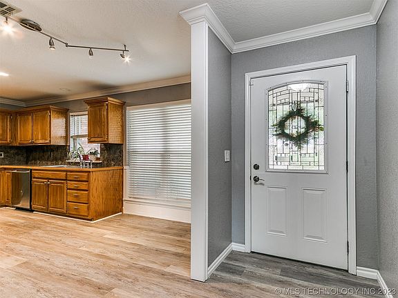 Charming Full Brick home with excellent curb appeal located in the sought-after Bixby school district. This 3-bedroom, 2-bathroom home offers a beautifully updated master bathroom and a spacious master walk-in closet. The extended driveway provides ample parking space. Step inside to an inviting open dining area flowing into the living room, boasting luxurious vinyl flooring. Additional features include an outdoor shed for extra storage and the convenience of French drains. Don't miss out on this gem!