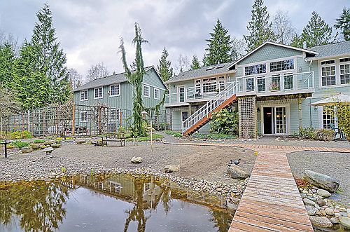 TRUE NW LIVING ON SECLUDED 10 ACRES Frml Liv & Din Rms w/Brazilian cherry flring. Grmt Kitch w/10' butcher block island & 6-burner prof'l gas stove! Mstr retreat w/see-thru frplc, WIC + bth w/lrg soak tub. Library w/gas frplc. Gas heated pool, w/energy efficient heat pump. Detch'd 3-car gar w/900 SF semi-finsh'd studio.