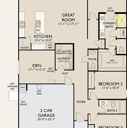 Stunning 3 bedroom/ Den /2.5 Bath home with 2 car garage located at Destination at Gateway. This home includes professionally designed features and finishes! Beautiful kitchen includes granite countertops, white shaker cabinets at perimeter of kitchen and at the island. White cabinets in the bathrooms. Stainless steel appliances. 4 panel slider off great room. 8ft doors throughout. Upgraded tile, electrical prewires and more!