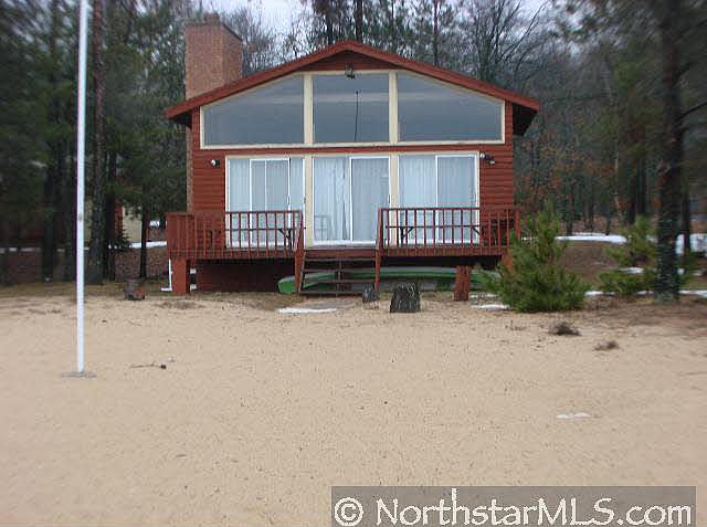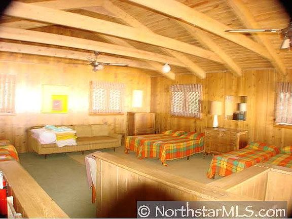 Very private, beautiful 150 ft. wooded lot with excellent sand beach. Property has good water depth for boating & excellent swimming. The 2 BR cabin has large 24x24 loft for additional sleeping or hobby room. 4.35 acres near the end of dead end road.