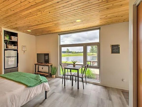 Whether your a traveling nurse or here for business this fully furnished modern studio is the prefect set up. Previously featured in 'Dwell Magazine,' this chic 1-bathroom short term rental studio provides all the comforts of home for your time in New Haven! This lovely studio is situated outside the Fort Wayne metro area while not being far from the area's top attractions. Conveniently located off of i-469. Easy access to grocery and shopping. Owner pays for all utilities. No Pets. No smoking. No Parties. No illegal drug use. Free parking. Short Term Rental. Fully furnished, including free Wifi, cable tv, and washer and dryer. Kitchenette includes Keurig, hot plate, cookware, microwave, dishes, utensils, refrigerator, glassware, toaster, and coffee mugs. Occupancy limit 2.