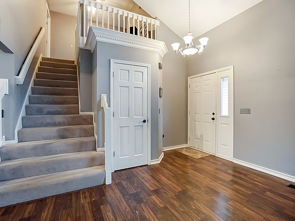 Located close to restaurants and major retailers, this contemporary home comes complete with a fenced in yard and finished basement. As you enter the entry you will be surprised at the vaulted ceilings and updated laminate flooring that runs throughout the main level. This front room can be either a dining room or another living space. From the front room you can either go up to the bedrooms or to the kitchen. The kitchen has lots of cabinetry with pantry and center island which has a unique built-in dining area. The cabinets come with over cabinet lighting. From the breakfast area and kitchen sink you can enjoy the back yard views which have a full, multi-layered deck and designated fire pit. The family room is extra long, allowing for most types of furniture layout and is complete with gas fireplace and wired for surround sound. Off the family room is the guest bath and laundry room with access to a large garage. Upstairs are three bedrooms. The master has trayed ceilings with an on suite full bath and walk in closet. The hall bath with tile surround, is shared by two bedrooms. In the lower level is a cozy finished basement that is separated into two rooms but open to each other so it allows for larger groups.