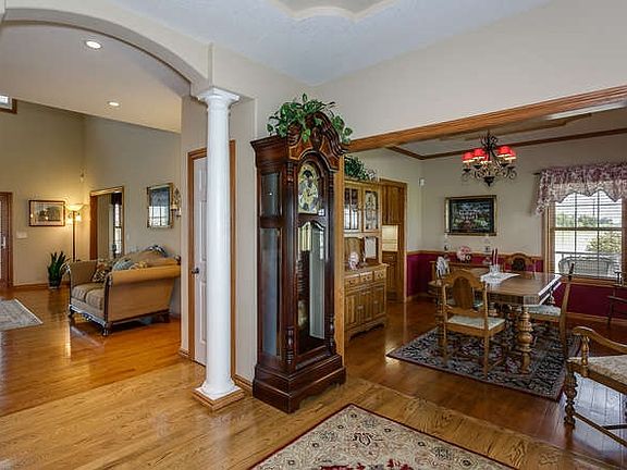 This unbelievable 2 story home on 5 acres is move in ready! This home has been meticulously maintained and is perfect for someone looking for space and fantastic amenities. As you walk up to this home right away you will notice the charm that is missing from most homes, this home is definitely not your run of the mill home. Both the front and back of this home have a porch that runs the length of the home, perfect for that morning coffee or evening iced tea. Right as you walk up you will notice how open and inviting this home is, when you walk in the front door you are greeted by a large foyer with tall ceilings and beautiful woodwork. Off to the right is a large dining room that connects to the kitchen. Straight ahead is the large open living room with 30 foot ceilings, a balcony, a beautiful fireplace, wood floors, and lots of windows. The kitchen is large and inviting, with high end appliances, tons of cabinets and a great breakfast nook that overlooks the deck and backyard. The main floor laundry area is very large with plenty of storage and a half bath. The main floor master suite is large with amazing views of the back yard and opens in to the master bath. The master bath includes a Jacuzzi tub, twin vanities and a large walk-in closet. A second bedroom and bathroom finish out the main floor. The 2nd floor has twin bedrooms with really cool dormers each with a bench with storage underneath. The two 2nd floor bedrooms share a large bathroom. The basement is finished with a family room with a nice fireplace, a bedroom with large walk-in closet, and a bathroom. Off of the family room is a huge unfinished room that is ready for sheetrock and carpet and would be an amazing theatre room, game room, or second family room. There is also a huge storage area, and a concrete storm room. There are too many amenities to list, but a few of the important ones are Sump pump over flow protection, walk-in pantry, custom wood blinds, plantation shudders, Z Rod whole house filtra