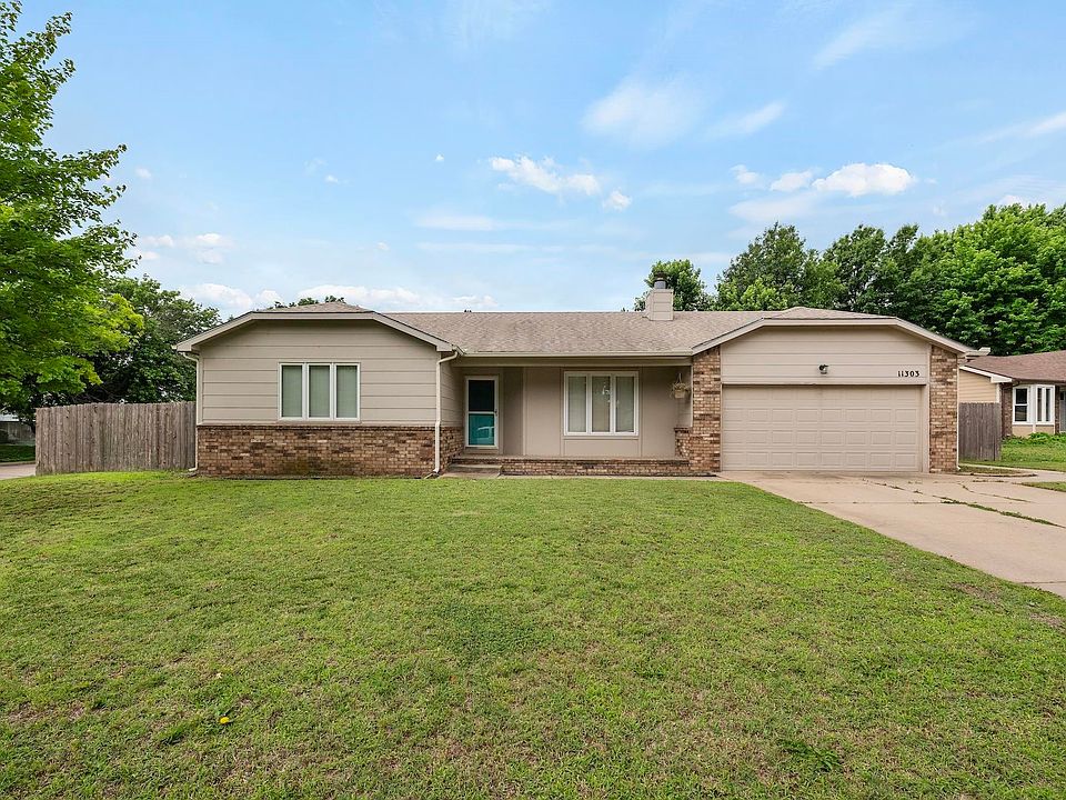 Welcome to this West Wichita ranch-style home located on a corner lot! This spacious 4-bedroom, 2-bathroom residence boasts a welcoming front porch and white woodwork throughout. Step inside to discover a large living room adorned with a wood-burning fireplace, perfect for cozy gatherings on chilly evenings. The kitchen/dining combo features tiled floors, French doors leading to the backyard deck, and ample space for entertaining. You'll love the bright and airy kitchen, complete with white cabinets, an eating bar, pantry, desk area, and black appliances that all stay with the home. Convenience is key with main floor laundry facilities and double closets in the primary bedroom. The primary bath offers a tub/shower combo, hard surface countertops, tile flooring, and a linen closet. Two additional bedrooms and a hall bath round out the main floor, providing plenty of space for family and guests. Downstairs, the finished view-out basement offers even more living space, including a family room, game room, and fourth bedroom. Plus, rough-in plumbing is available for a potential third bathroom, allowing for future customization. Outside, enjoy brand new decking on the backyard deck and the wood privacy fence, creating the perfect setting for outdoor entertaining or relaxation. New light fixtures in Kitchen & dining. Close to grocery stores, Churches, parks, restaurants. Just a short drive to 21st & Maize Road shopping district. Don't miss your chance to own this home offering space, comfort and style in a desirable neighborhood. Schedule your showing today and make this ranch home yours! Offers will be reviewed daily after 8 p.m.