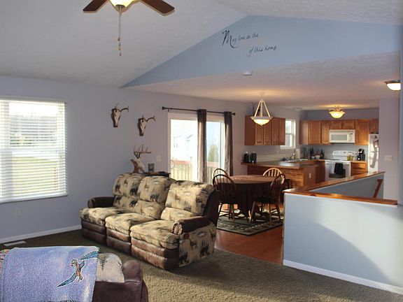 Over 2400 sq ft of living space in the daylight ranch located on quiet 1 plus acre setting just northwest of Rockford. 8 miles to Greenville and 10 miles to 131 expressway. Open layout with cathedral ceilings, 4 Bedrooms 3 baths. All appliances are staying including a brand new (smart) washer and dryer, water softener, 200 amp electric. New 40 year roof just installed two weeks. Huge back yard, and possession is possible very quickly following closing. Natural Gas and cable.