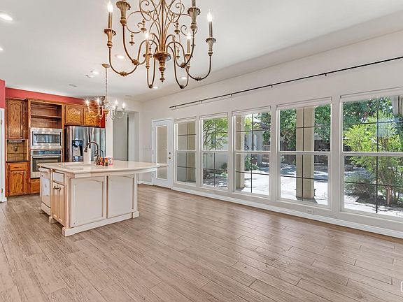 Welcome to this exquisite 4-bedroom, 3-bathroom home nestled in the charming Seven Oaks West community. As you step inside, you are greeted by a spacious living area adorned with a cozy fireplace, soaring vaulted ceilings, and elegant plantation shutters. The gourmet kitchen boasts luxurious LVP flooring, a generous island with a breakfast bar, a dedicated dining area, and expansive windows that flood the space with natural light. The residence offers three beautifully appointed guest bedrooms with plush carpeting and two guest bathrooms, one of which conveniently opens to the serene backyard. The master suite is a true retreat, featuring his and hers closets, direct access to the backyard, and a lavish bathroom with a walk-in shower and a separate soaking tub. The backyard is a private oasis, complete with a large covered patio, mature landscaping, and a spacious grassy side yard. Don't miss the opportunity to make this stunning home yours!