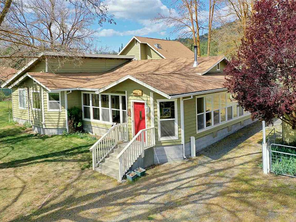Gracious country living! large home that is set up for multi family living. 4 bedrooms and 4 baths. Possible one bedroom apartment with private entrance. Wrap around sun porch that brings the light in for glorious enjoyment of the beauty of the Scott Valley. two nice bedrooms and a full bath upstairs, huge master suite on main level, open living,dining and kitchen area. tons of storage throughout home so much to say this really is a must see to appreciate all that is here. 3000 sq ft shop with 3 roll up doors power and water. Lean to storage behind the shop that could work as horse stalls or for more storage. Property is fenced and cross fenced with plenty of room for one or two horses, chicken coup, irrigation ditch runs at back of property not adjudicated but may sub irrigate, sprinklers, fenced garden, two car garage in addition to huge shop, garden tool shed, small building that would make a great craft room or guest cabin, well house. All information is approximate and subject to buyer verification. Corona virus entry form is required before viewing home.
