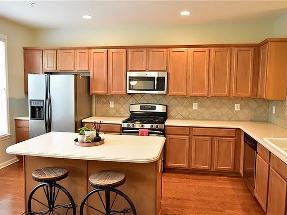 - Kitchen Features: Breakfast Bar, Cabinets Stain, Eat-in Kitchen, Pantry, View to Family Room, Kitchen Island, Solid Surface Counters