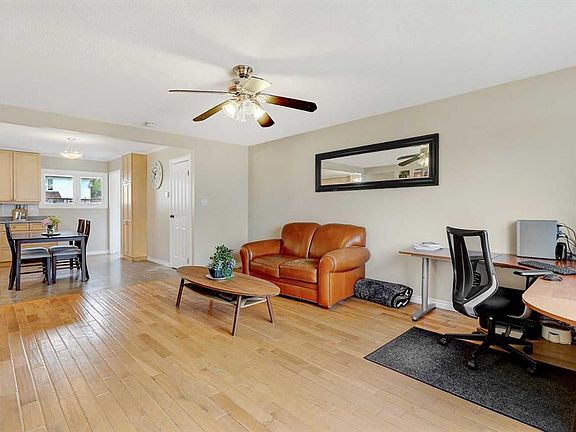 This charming corner-lot bungalow is full of character and ready to welcome its new owners! Step inside to a spacious foyer that opens into a bright, kitchen featuring maple cabinets, oversize pantry, and stainless steel appliances. The open layout makes it the perfect space for gathering with family and friends. The main floor has been updated with beautiful sculpted hardwood throughout the living room, hallway, bedrooms, and office/dining space, along with built-in features like an entertainment center for added function and style. You’ll also appreciate the top-of-the-line new windows on the main level, additional insulation in the attic—energy-efficient and ready to keep you cozy through the winter. Major upgrades such as the furnace, shingles, and hot water tank add even more value and peace of mind. The fully finished basement offers a large family/rec room, two additional bedrooms, another full bathroom, and plenty of storage. Outside, the large landscaped yard is fenced and includes a block patio, and play center, shed, and a single-car garage. Whether you’re searching for a family home or a solid investment property, this one is a must-see! Book your showing today.