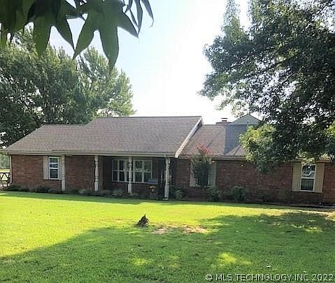 Beautiful 3044 sf home on 10A Hwy 75. 20' x 31' shop bldg elect storm shelter, chain link fenced area. granite counter tops, 2 living areas, 3 baths. All appliances except washer and dryer will stay as well as all window dressings. Rural Water.