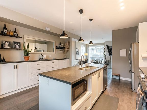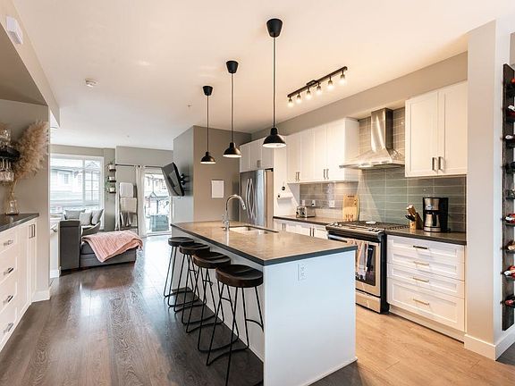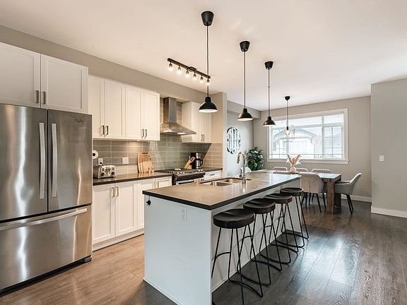 MAPLE HEIGHTS MASTERPIECE. Welcome home to one of the most desirable communities in Maple Ridge! END UNIT with a spacious+ thoughtful layout. Rarely available floor plan with living room, office nook large dining room & kitchen. Light colour scheme with white cabinetry, designer lighting & laminate floors. Kitchen has oversize island, built in cabinetry/bar area for extra storage. Bright+ airy open with extra windows for natural light. The patio leads down to your newly turfed yard. Steps to daycare+ elementary school! SRT / Shopping / Kanaka Creek regional park at your doorstep. Commuter's dream with options to head West inc/straight through bypass via Kanaka Way. Proactive+ well run complex. Quality built by Qualico/Foxridge, SHOWS A 10! Open house SAT & SUN 2pm-4pm.