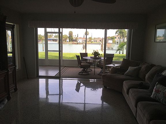 Fully furnished DEEP WATER on Isle of Palms! Beautiful waterfront 3bed/2bath /1 car garage(converted to workout room, can easily be converted back to garage) home on desirable Treasure Island. Like new 18 Foot Center Console Key Largo included in sale!! This updated home is nicely located on a 300' canal with deep water. The dock has a deep water slip perfect for a large cruiser or sailboat as well as new 10,000 pound lift. Quick access to the Gulf of Mexico via Johns Pass or if you want to just cruise the inner coastal its a short ride to Blind Pass. The home has a spacious and open layout that includes a huge living room, a Florida room, and updated kitchen with room for a breakfast table plus a dining area. This home has been professionally maintained and has many updates such as newer windows. Highly polished terrazzo floors flow throughout the home. Your new backyard paradise includes a spacious patio , a private fenced backyard and an amazing water view, perfect for anyone looking to live that Florida Waterfront lifestyle. Washer & Dryer For sale by owner as if buyer uses realtor buyer pays realtor fees.