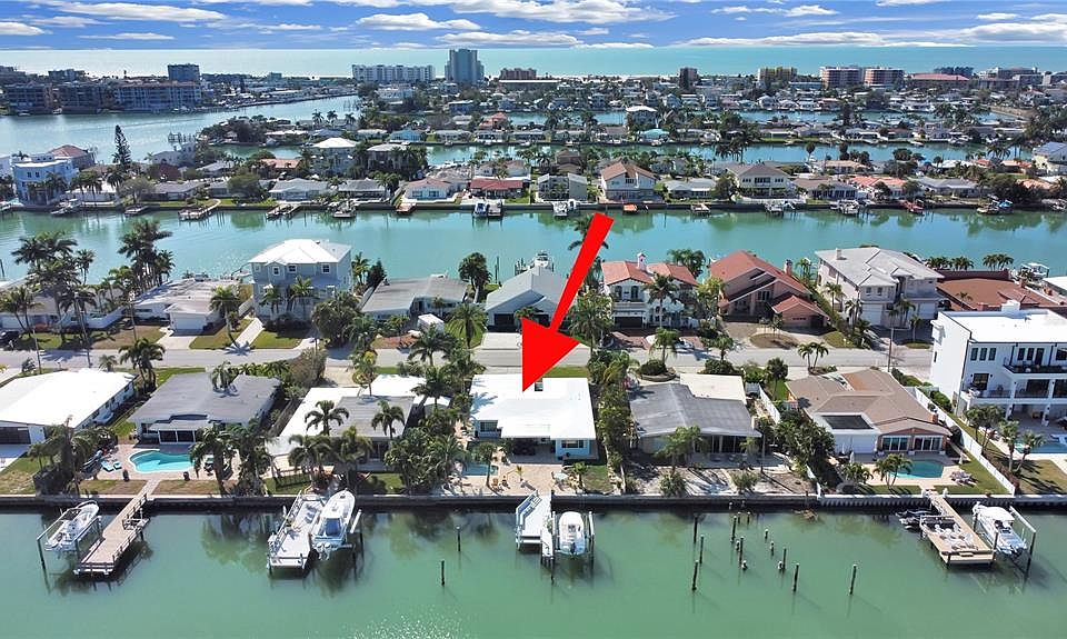 This exquisite waterfront home on Treasure Island has been beautifully updated and boasts a pool overlooking a wide, deep saltwater canal, providing easy access to the Gulf of Mexico. The residence features a spacious, renovated primary bedroom with a vaulted ceiling, walk-in closet, and an additional closet, both equipped with organizers. The en-suite primary bathroom includes a double sink and a garden tub/shower combination, offering stunning water views from the bedroom. A generously-sized front guest bedroom comes with double closets. Upon entering through the front gate, you're welcomed into a private courtyard with a Jacuzzi tub. The home opens up to reveal elegant maple soft-close cabinets, granite countertops throughout, and stainless steel appliances. The kitchen overlooks the dining area, living room, and a back den that includes a built-in bar and wine fridge. While the fireplace is for decorative purposes only, it adds to the ambiance of the space. All living areas and the kitchen offer breathtaking views. The backyard features a large covered porch and a saltwater pool with a recently replaced pump. Additionally, there's a 10,000 lbs. boat lift and ample space for sailboats or cruisers. The brand new A/C was installed in September 2023, and the home is equipped with hurricane shutters and panels. The electrical system was updated with a Square D Electric Panel in 2022, and the garage door was replaced in October 2023. A reverse osmosis water softener services the entire house. The expansive dock includes a step-down area for swimming or paddleboarding and plenty of seating to enjoy the views. The two-car garage features built-in storage, and the oversized driveway can accommodate up to six cars—ideal for entertaining guests. The listing agent is also the owner and will show the property by appointment only. Private financing options are available (refer to realtor comments), and there's also the possibility of purchasing the home furnished. This home offers a opportunity to live the tranquil and serene waterfront beach lifestyle!!!