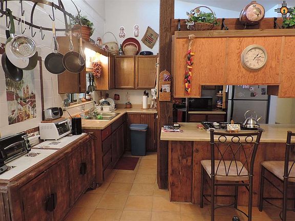 Your own Hacienda ! Great private property close to town. Lots of private gardens, and meditation areas ! Sits on 3.045 acres. Home is a 3 bedroom 2 bath with 1476'. Has a private court yard and covered patio. Also over 50 pine trees on property. Tiled floors throughout. Wood burning stove in living room and open floor plan to kitchen! Laundry room with sink and pantry combo. Bonus room could be extra bedroom or office. Great tile work inside and out. Walking paths and sitting areas surround property! Great place to entertain. Great views of the Floridas and Tres Hermanas. Also has a roof deck to enjoy the views!! This home is a must see to enjoy!!