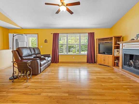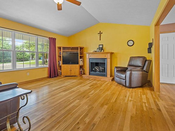 Introducing a stunning 4-bedroom home with a bonus room, nestled on 1.4 acres in the highly desirable Stonegate neighborhood. This beautifully wooded property offers privacy at the end of a quiet cul-de-sac. With nearly 2,900 sq ft, this home features a recently upgraded, large back deck, perfect for entertaining or relaxing in nature. The backyard also includes a concrete pad and gazebo, ideal for a hot tub. Inside, you'll find original hardwood floors being meticulously refinished by the sellers for a fresh and polished look. The kitchen comes equipped with stainless steel appliances, including a refrigerator, dishwasher, and oven, all of which will remain with the home. With cathedral ceilings and a spacious two-car garage, this property is a true gem waiting for you to call home!