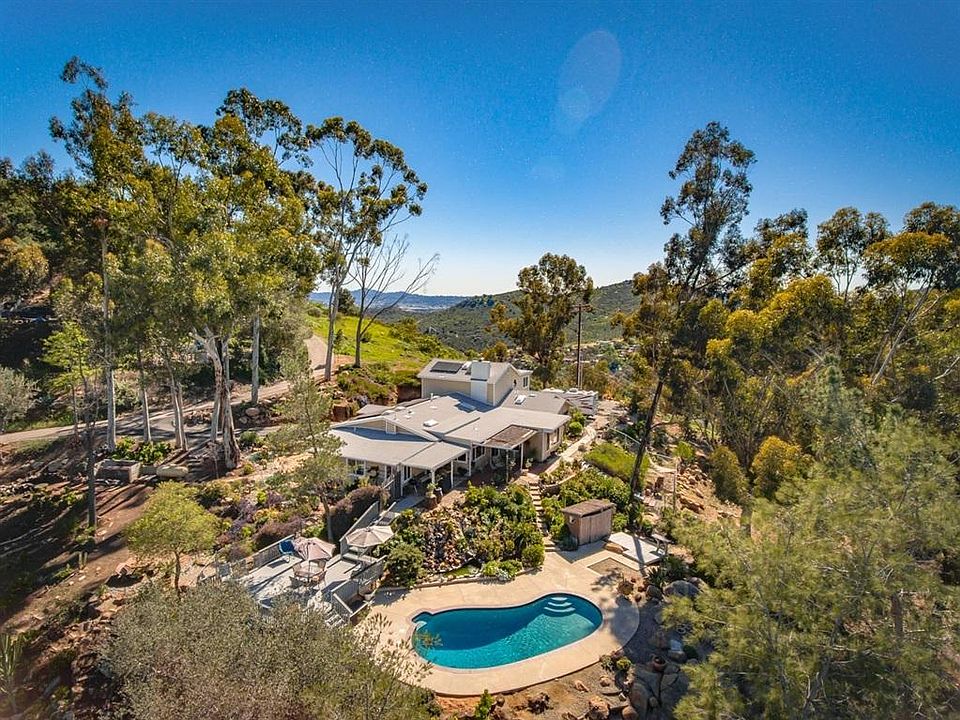 Head for the Hills! 1 special property-serenity abounds at top of hill * Room to move on 2.5 acres with 3000'+with a flexible floor plan * Lovingly updated, upgraded * All the "I wants" - Privacy, beautiful views, pool, fireplace, A/C, modern kitchen, garage and tons of parking including RV * Please read Supplement!! Outstanding features >>>>Classic Ranch expanded, improved with upgrades and extras galore! * Panoramic views of mountains, hills, city lights, sunrises and sunsets * Formal entry opens to great room/open concept * Terrific floor plan allows for separate family/granny flat with own front door and porch * Not original modern kitchen featuring copious cabinets, island, ss appliances including 5 burner range and new oven & views * Family style living room with conversation room * Focal point stone fireplace * Entertainment sized dining room * Very private master suite with remodeled bath * Office with built ins * Separate wing of spacious bedrooms * 2 additional updated baths * Man cave style garage ** Central A/C, newer dual pane windows, paid solar, Hardy plank siding, recessed lights, Skylites, fan lites, smooth ceilings, custom paint colors, new beautiful floor coverings ** Grounds include rock formations, gardens, covered patios, floating deck, spectacular pool** Ample car parking & RV spot with water, power, dump ** Even Owl birdhouse * Paradise found!