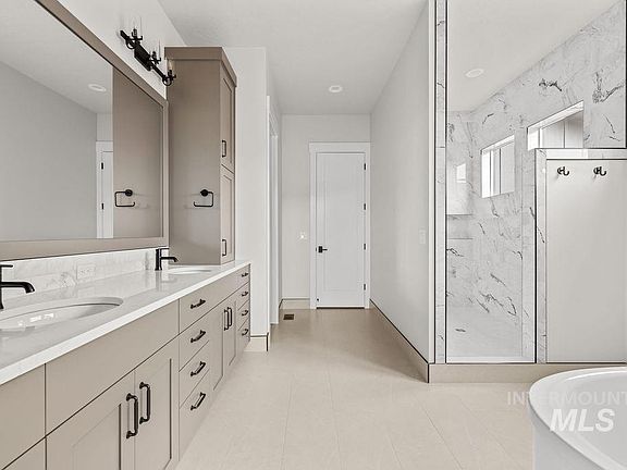 MOVE-IN-READY!! Now offering epoxy garage flooring and full fencing! Experience the elegance of the Grayton at The Highlands in Cartwright Ranch. This 4-bedroom, 4-bathroom home with a spacious 3-car garage spans 3,297 square feet, featuring vaulted ceilings throughout and a stunning floor-to-ceiling brick fireplace in the great room. All bedrooms are en suite, and the home includes a bonus area for added flexibility. The kitchen is a chef’s dream with Thermador appliances and a butler's pantry. Situated on a 0.5-acre lot with a large backyard, this home offers ample space inside and out. Located in The Highlands at Cartwright Ranch, this community provides breathtaking foothill views, extensive trail systems, and a peaceful yet convenient lifestyle just minutes from downtown Boise. The builder is offering epoxy flooring in the garage and full fencing for the backyard.