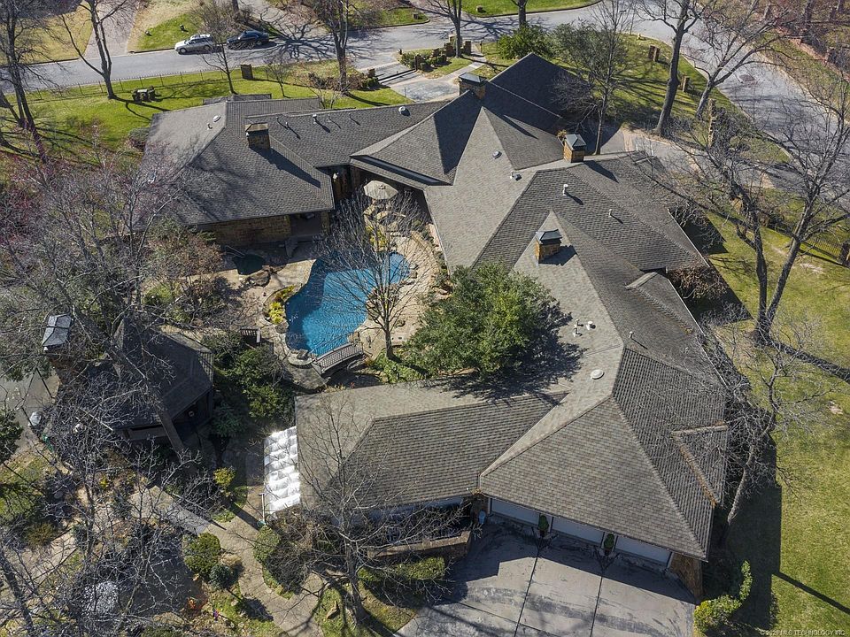 Wooded 1.73 acre property in Jenks SE schools. Just under 6,500 sq ft on one level-corner lot. New kitchen with large granite island & double ovens. Updated family room, wet bar & powder room. Great views from each room, multiple living, 4 bed, 6 full ,2 half baths, plus guest quarters. Pool, Spa, Koi ponds, outdoor kitchen, lighted tennis court. New well on property supplies ponds and sprinklers.