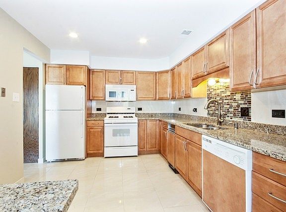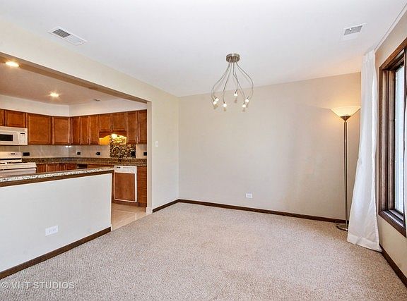 Top floor move-in ready expansive 1200 sq ft 2bd/2ba updated condo with attached 2 car tandem garage is located in the highly desired area of Palos Hills near expressways, shopping, schools and restaurants. Unit includes beautifully updated kitchen with new cabinets, granite countertops. Spacious living room with exposed brick and separate large dining room. Sliding glass doors to balcony off of living room. Both baths completely updated with marble and contemporary finishes. Large Master bedroom features walk in closet and master bath. Nice size laundry room with full size washer and dryer. Freshly painted a lovely neutral color. Extra large storage room. Shows beautifully.
