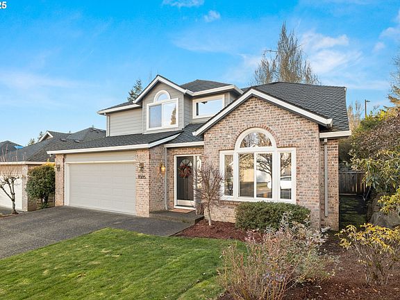 Welcome to Murrayhill, one of the most established and sought-after planned communities in Beaverton, known for its welcoming atmosphere and strong sense of community. From the moment you step inside, you'll feel at home, greeted by soaring 14-foot ceilings in the living space and large windows that bathe the area in warmth and natural light. A striking curved staircase adds a unique architectural touch to the home. Toward the back of the house, the open-concept layout seamlessly connects the family room, kitchen, and dining area, offering the perfect balance of style and functionality. The large windows frame beautiful views of the backyard, creating a tranquil setting. The kitchen features an eating island, cork flooring, white cabinetry, and newer appliances, including a dishwasher and refrigerator.Upstairs, the spacious primary suite boasts vaulted ceilings, dual vanities, a soaking tub, a shower, and a nearby walk-in closet. A Jack-and-Jill bathroom conveniently connects the two additional bedrooms. The backyard offers two patios—one of which is covered—making it an ideal space for relaxing or entertaining. The home also includes sprinklers, a two-car garage with a pop-out area for storage or a workspace, a newer furnace and air conditioner, and a Presidential roof.Murray Hill offers exceptional community amenities, including three swimming pools, tennis and pickleball courts, baseball and soccer fields, and basketball courts. Residents can take advantage of swimming lessons, fun runs, holiday celebrations, and movie nights. The neighborhood features a network of scenic walking and biking trails and is close to the Murray Hill Marketplace, home to several restaurants. Progress Ridge, less than a mile away, offers popular spots like Big Al’s and New Seasons Market, while Washington Square Mall is just a 10-minute drive. This community is surrounded by top-rated schools and is a favorite among employees of major Oregon employers like Intel and Nike.
