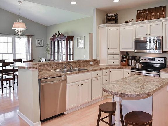 Immediate occupancy available! Beautiful 4 bedroom, 2.5 bath colonial in Hunters Green! Fantastic floor plan with 9-foot ceilings! Welcoming entryway with a deep coat closet leads you into the spacious great room with crown molding. There's a 3-way fireplace between the kitchen and great room to stay warm in the winter! Find your culinary inspiration in the updated kitchen with stainless steel appliances, center island, breakfast bar, a pantry with automatic light and lots of cabinet space. It opens to the sun-filled dining room with vaulted ceilings and a great view of the backyard. Off of the dining room, there's a 16x12 screened porch - a great place to relax and enjoy a glass of iced tea! The first floor office is at the front of the house, tucked away for a productive environment. Half bath with a pedestal sink and a first floor laundry room. Upstairs, the master suite offers a huge, private master bath with a soaking tub and a walk-in closet. 3 additional bedrooms and a full bath. The full basement boasts high ceilings for an easy finish if desired as well as ample storage with shelving. The 2-car attached garage has extra storage space and high ceilings. Situated in a wonderful neighborhood with a private, wooded backyard and a firepit. Updates include stainless steel dishwasher, oven/range and microwave 2017, stainless steel refrigerator 2016, sump pump 2017, shutters 2016, carpet in great room 2015, landscaping 2014, hot water tank 2014, water softener 2006 and more!