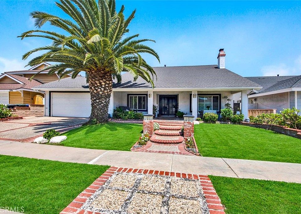This gorgeous home is a “must see”. The curb appeal is just the start of the amenities that are included in this home. Located on a cul-de-sac in an extremely desirable area. The home has the highly sought after two primary bedrooms. One upstairs and one down with walk in closets and beautiful full bathrooms. The downstairs primary bath has a Jacuzzi and walk in shower. Upstairs primary bath has Japanese soak tub and steam shower. Guest bathroom with shower located downstairs. Freshly painted home with new carpeting throughout the second floor. The den and dining room flooring is travertine. A walk-in pantry off kitchen. Six ceiling fans throughout the home. Front load LG washer and dryer, water softener and stainless refrigerator included. Beautiful pool/separate spa/putting green give you a wonderful outside entertaining area. Two large Tuff Sheds (5’ x 9’ each) are included for additional storage. Dual control heating and air conditioning. Highly rated Los Alamitos school district.
