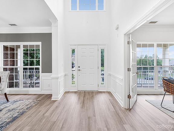 Fully renovated home in a sought after lake front neighborhood! This 5-bedroom, 2.5 bath home will take your breath away! As you step in to the two-story foyer from the rocking chair front porch, you'll notice the main floor includes a formal dining room, office, family room with a gas log fireplace. You feel like a chef in the gorgeous gourmet kitchen. Then take advantage of the Carolina outdoors with a freshly stained deck, and an additional screened in porch. Upstairs you'll find the primary bedroom. It features tray ceilings with a bonus area, large bathroom including a wet bath and a great walk-in closet. Four additional bedrooms along with a full bath and laundry are on the second floor. The homesite backs up to a wooded common area. The community includes a lake front pool, clubhouse, community boat launch, 2 playgrounds, tennis courts and a boat storage & recreation area.